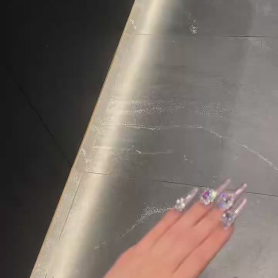 Selene’s Moon Elevate your style with these elegant extra long pink nails featuring a graceful coffin shape accented by delicate zirconia stones. Designed for a refined and polished look, they add a subtle sparkle that complements any outfit with sophistication and charm. Perfect for those seeking a blend of classic femininity and modern glamour.